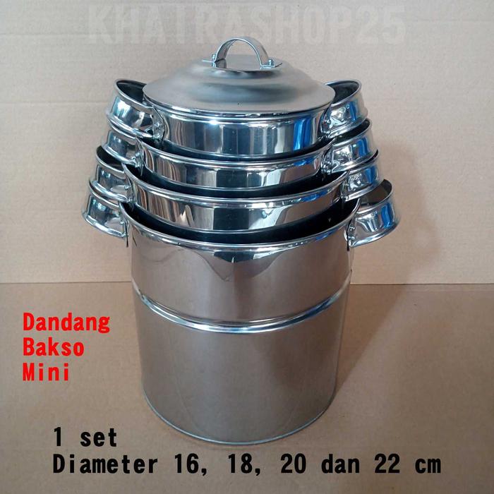 Murah 1 set Dandang bakso mini diameter 16 18 20 dan 22 cm stainless 4pcs Promo