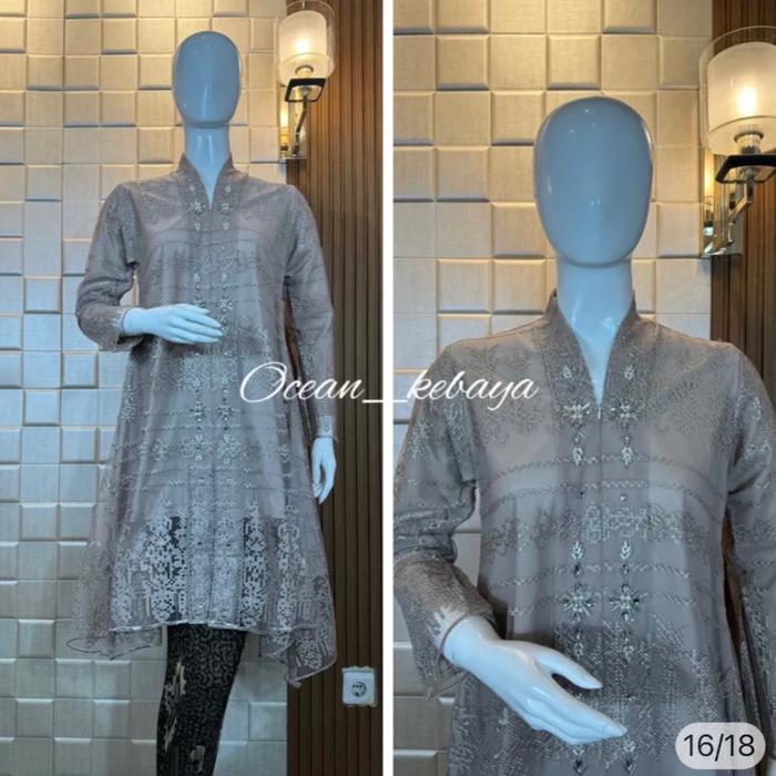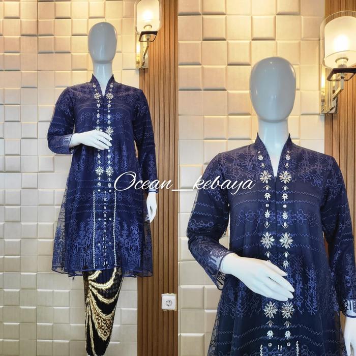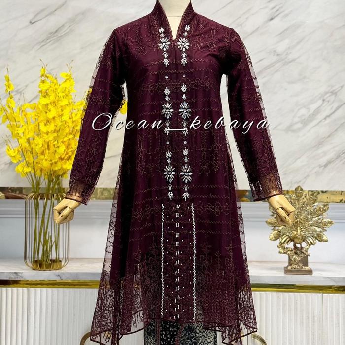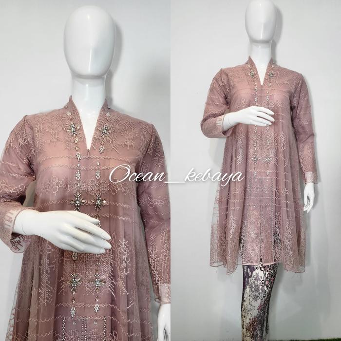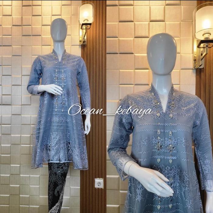 Kebaya Kartini Motif Bordir Payet Salur Mayhira Atasan Dress Panjang Baju Wanita - Sage green Atasan M + rok