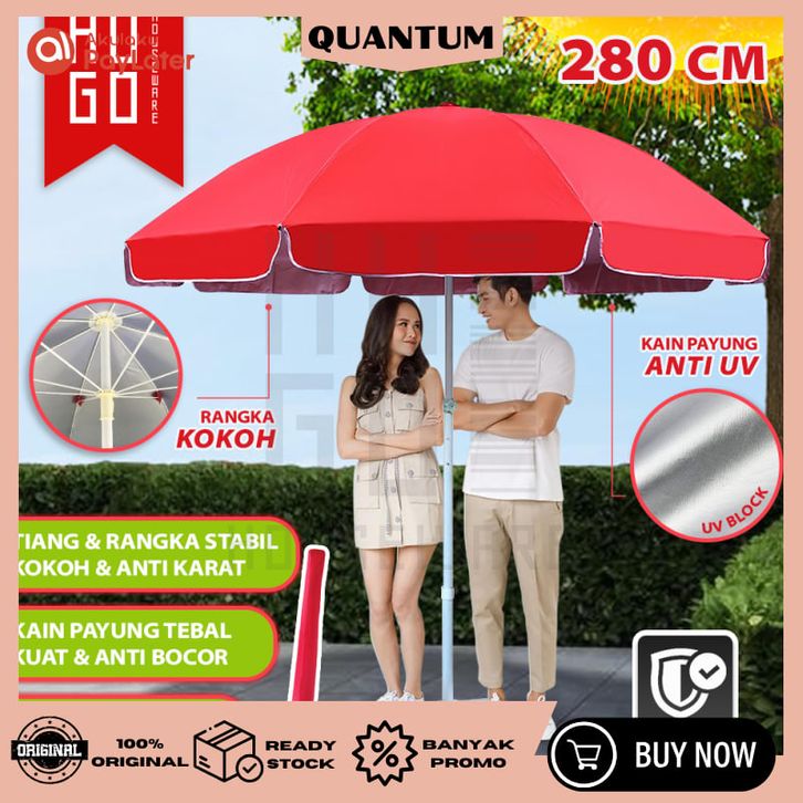 HugoHouseware Payung Jualan 280 CM Payung Tenda Taman Pantai Cafe Bazar Lapak dengan Sarung