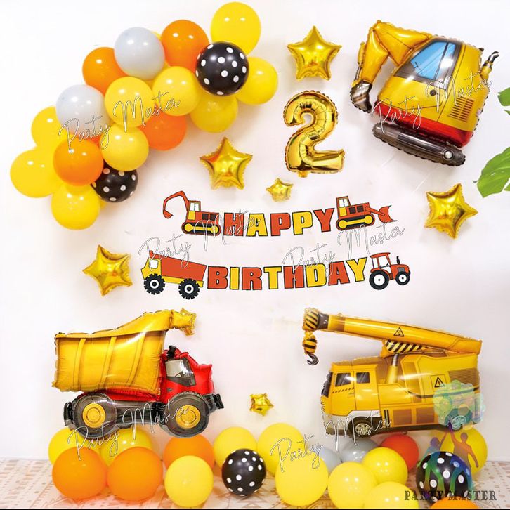 Paket Dekorasi Ulang Tahun Led Truck Excavator Balon Anak Mobil Kendaraan Berat Balon Ulang Tahun Anak Laki-Laki