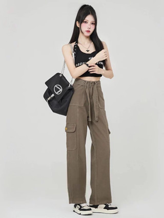 (Gratis Ongkir) Celana Jeans Cargo HW Wanita Super Premium J41-Variasi Pinggang Ikat Tali Depan Jeans Cargo Korean