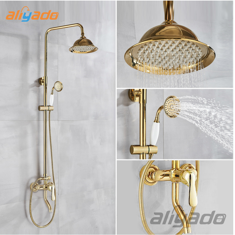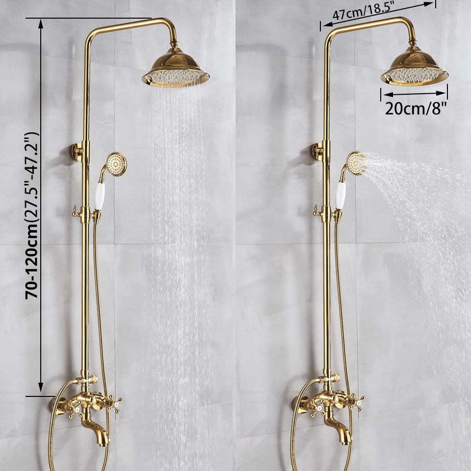 Shower Tiang Panas Dingin Shower Kamar Mandi kepala kran shower Set 3 In 1 Klasik Goldd