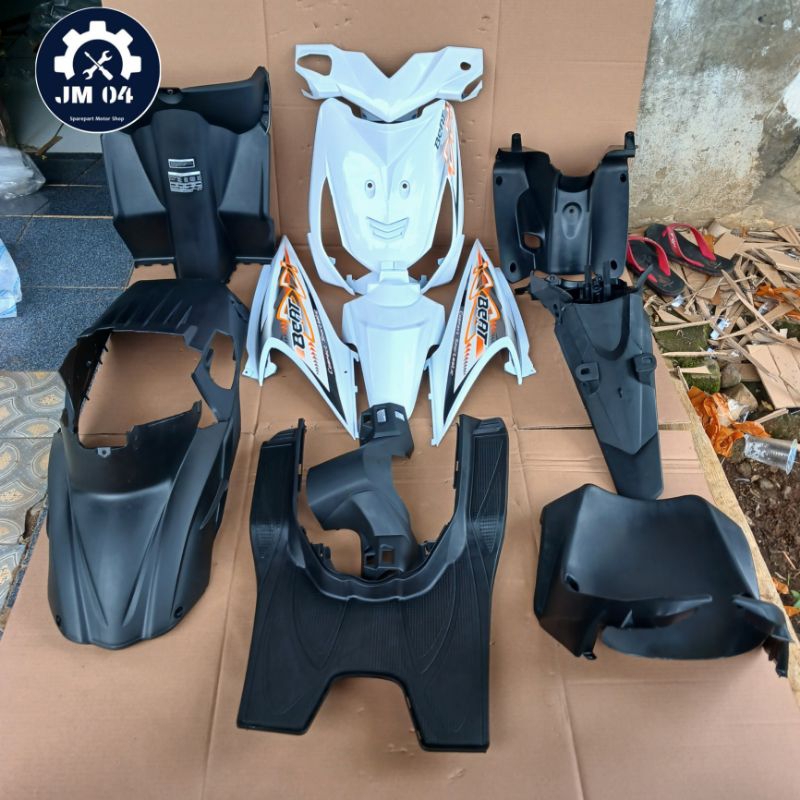 Cover full set body halus kasar motor honda beat karbu 2010-2012 plus striping warna putih