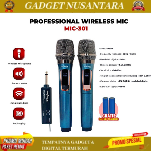 Mic Wireless Bluethooth Karaoke Advance Mic Wireless UHF Bisa di Charger Profesional Microphone Digital Mic Karaoke Mic