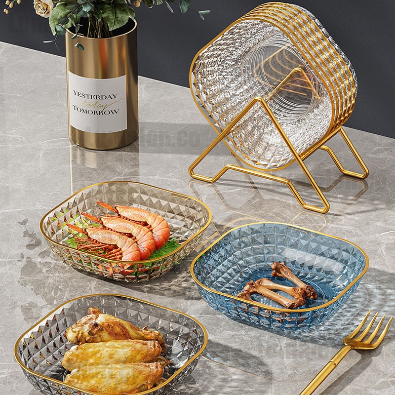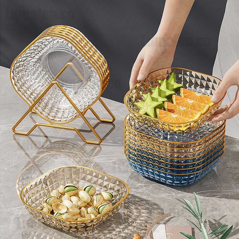 [Star] 6 PIRING + 1 HOLDER Piring Buah Snack Dish Plate Plastik Rumah Tangga Makanan Ringan Piring Perlengkapan Dapur