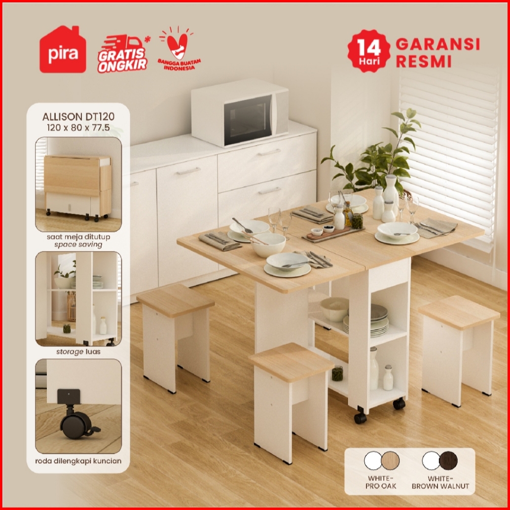 Pira - Allison Dt120 Meja Makan Set Lipat