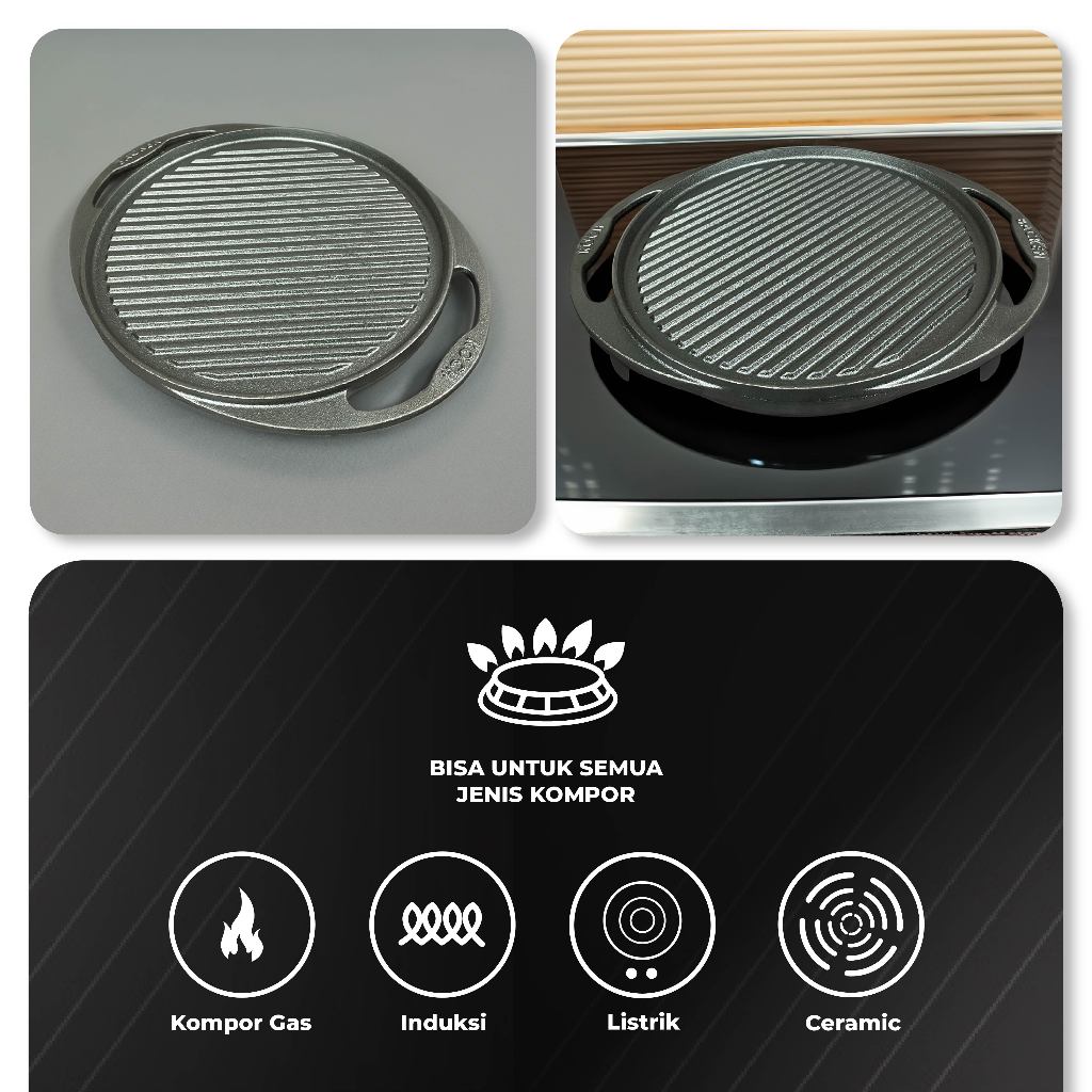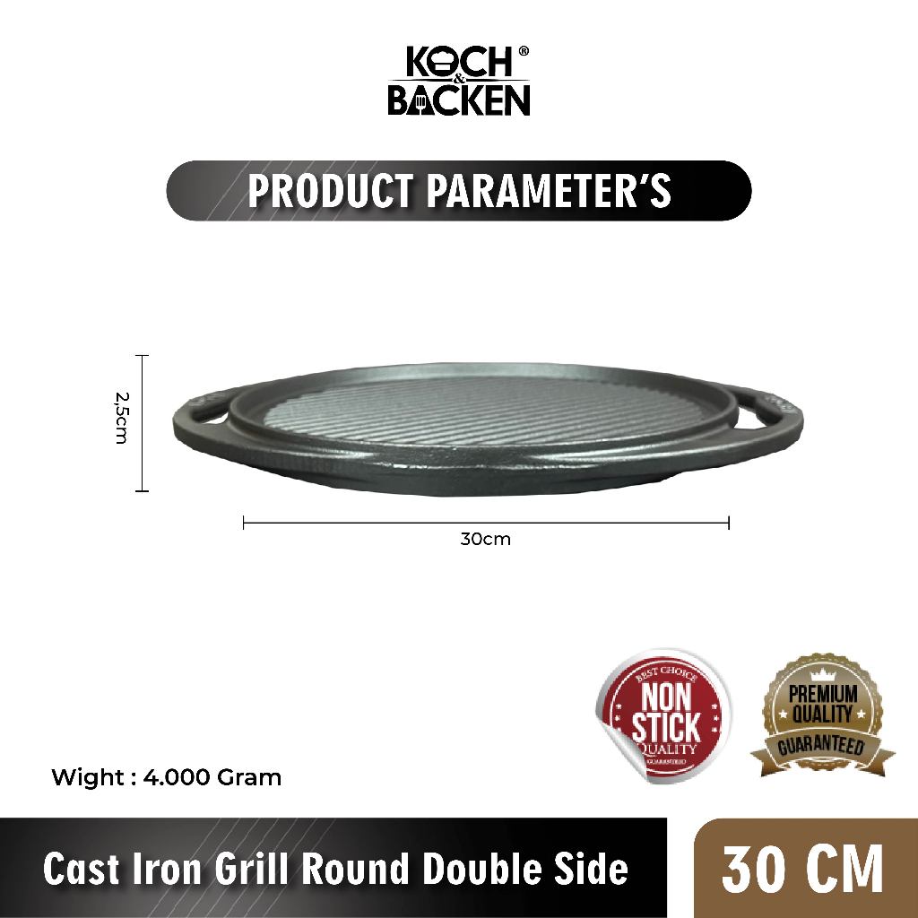 Alat Pemanggang Cast Iron Grill Round Double Side 30cm Panggangan Besi Cor Koch&Backen