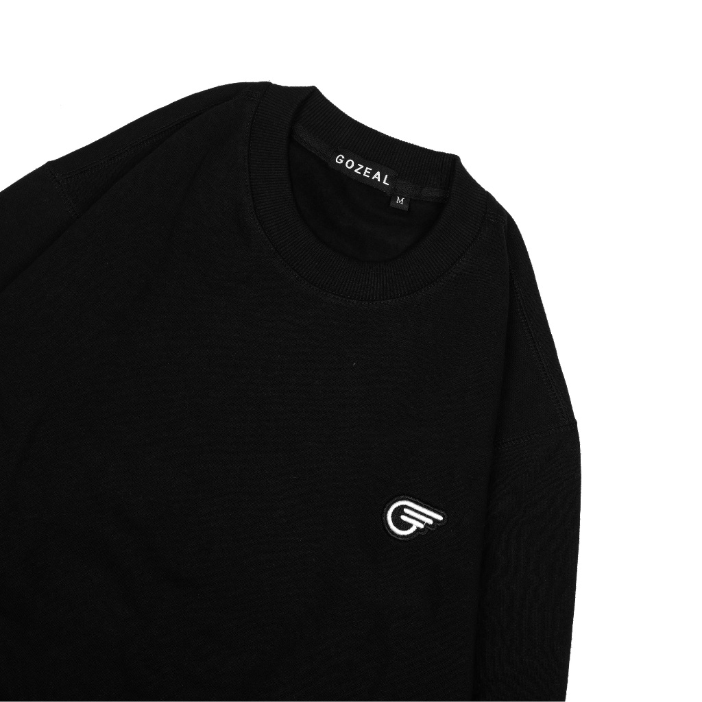 Gozeal Crewneck Logo Black Cotton Fleece S-XL outer Katun crewneck Atasan Pria Laki laki street style