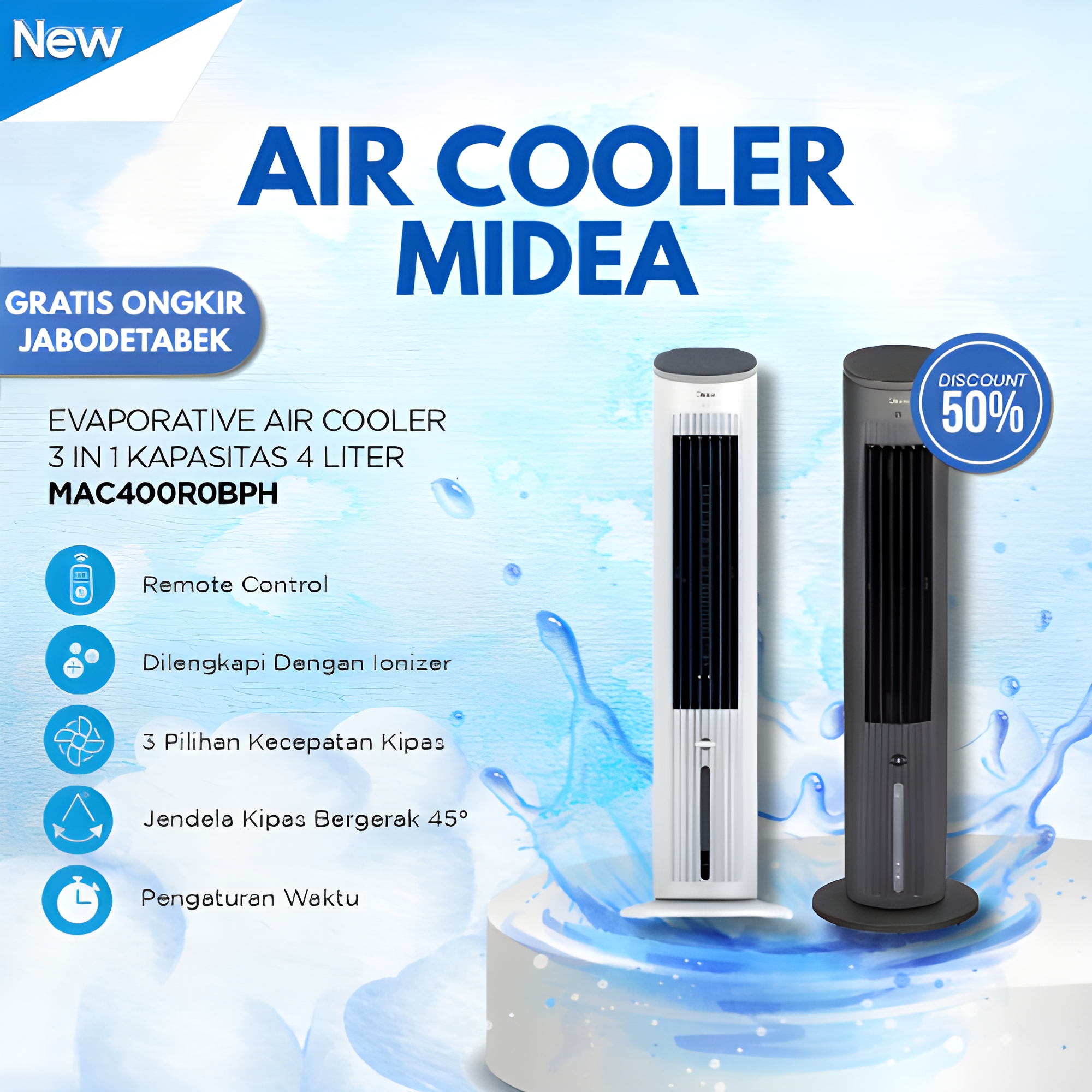 [Gratis Ongkir] Air Cooler Midea 3-in-1 MAC400R0BPH Portable|Sharp|Denpoo|Ace|Kris Bow|Dingin Terbaik Berkualitas