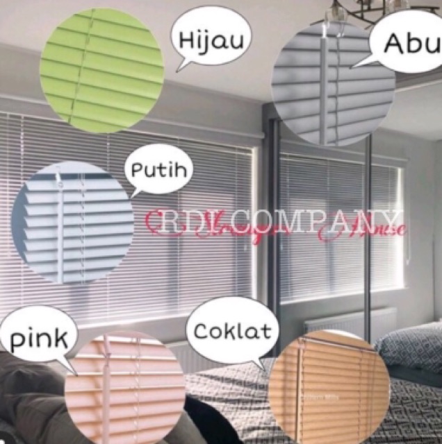 Kris Tirai 40x180cm gulung venetian pvc - warna putih,coklat,abu,hijau,pink