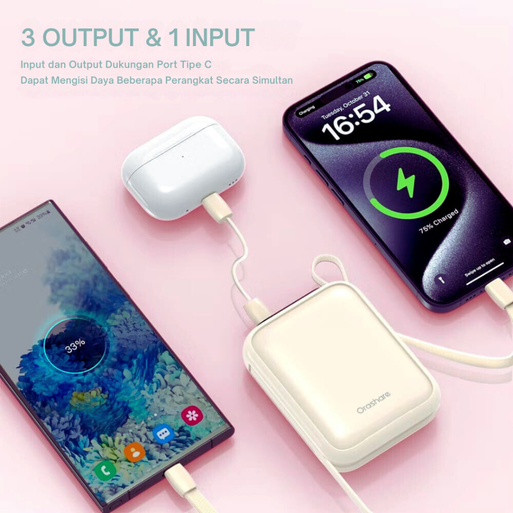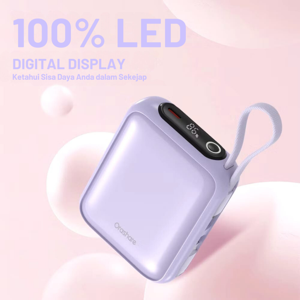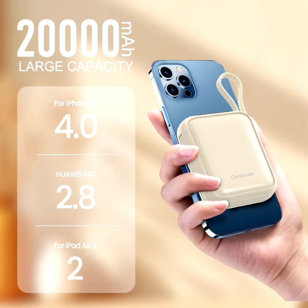 Orashare PCM20 Mini Powerbank 20000mAh Built In Dual Cable 22.5W Fast Charge Compact and Portable