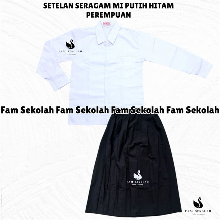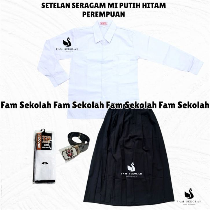 Setelan Seragam SD/MI BAJU PUTIH POLOS ROK HITAM Untuk Perempuan
