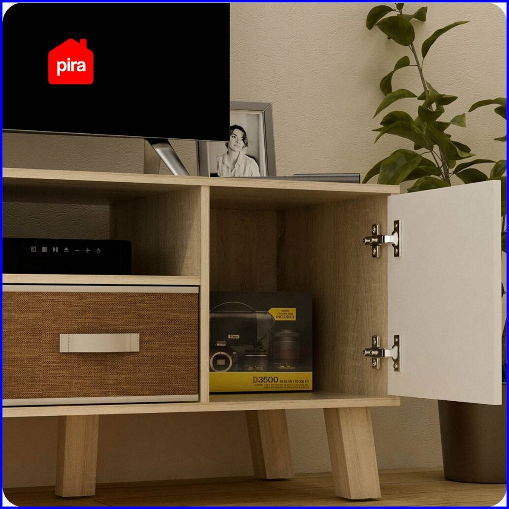 Pira Metropolis - Arnor Tv120 Meja Tv Rak Tv Kayu Terang Putih - Sonoma Oak - White