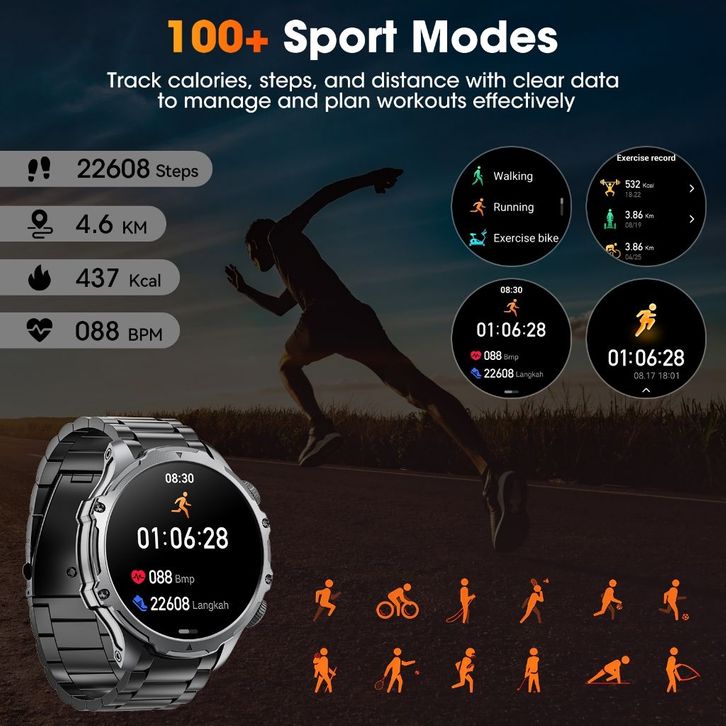 ENC Military Smart Watch for Men 1.85’ Large HD Touch ScreenAnswer/Make Call, 700mAh Large Battery Fitness Watch with