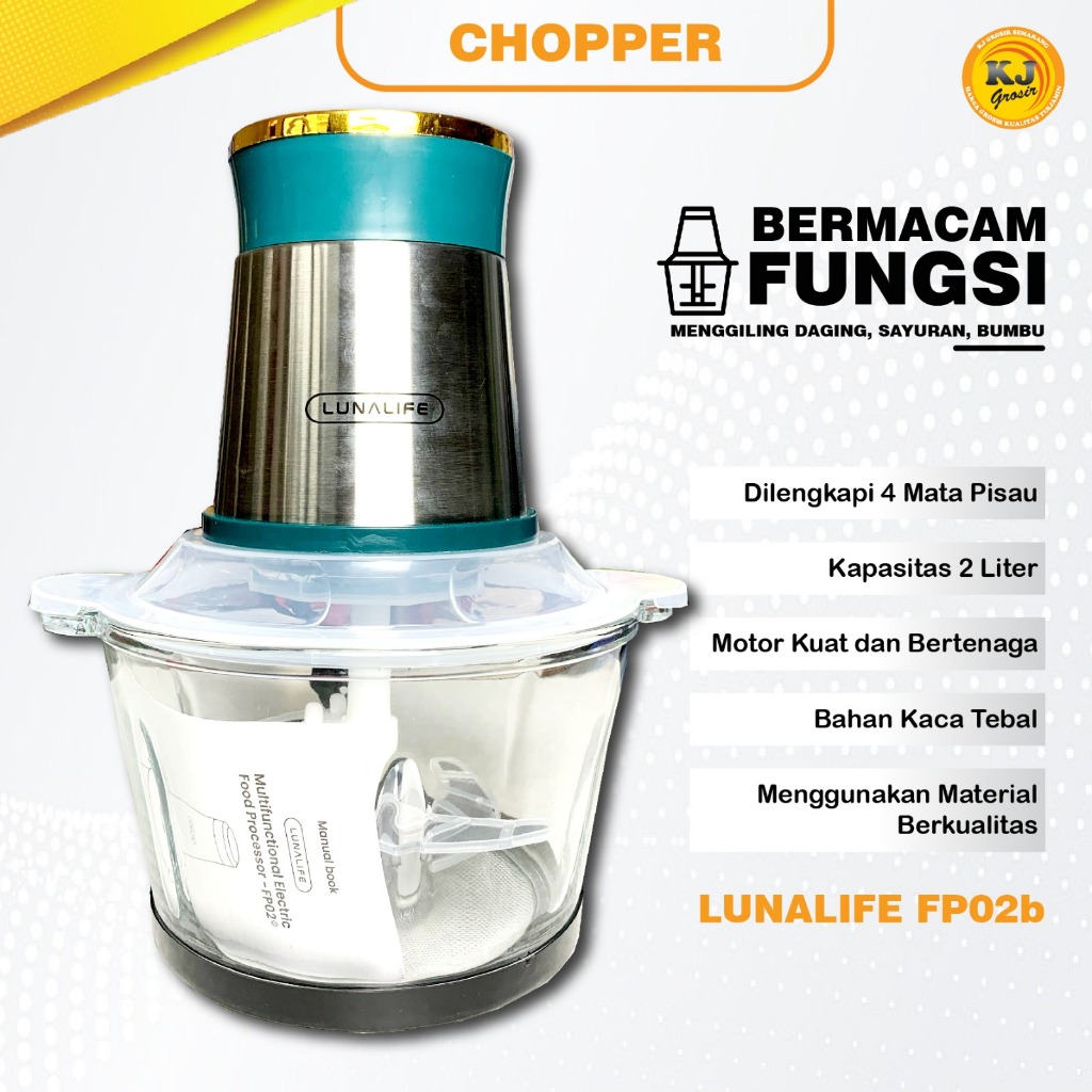 LUNA LIFE BLENDER CHOPPER/CHOOPER KAPASITAS 2 LITER BAHAN KACA FP 02 B PENGGILING DAGING DAN BUMBU