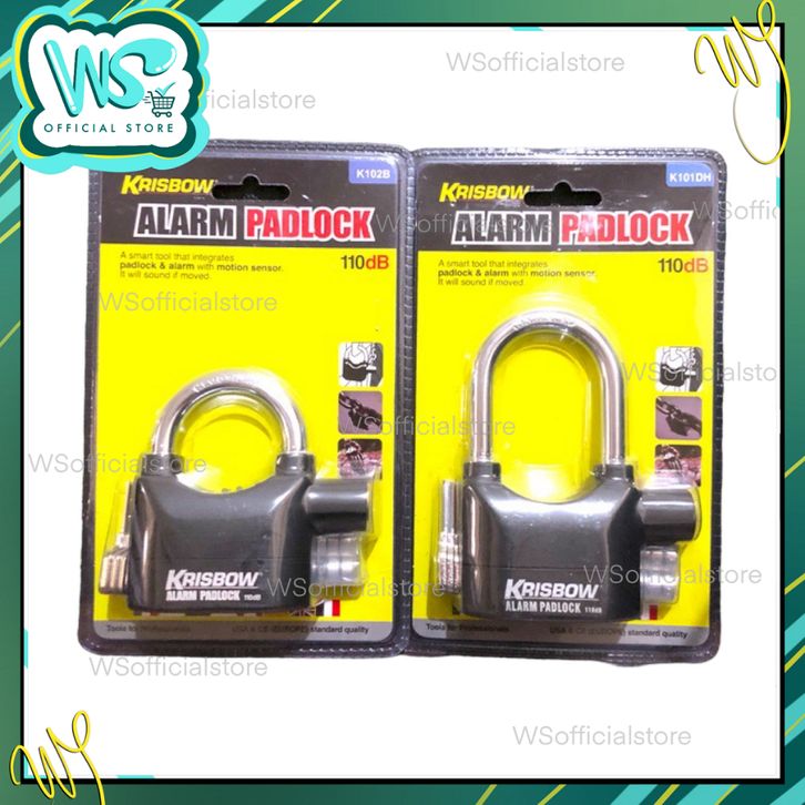 Gembok Alarm Anti Maling KRISBOW Original Padlock Sensor Getar 110Db Kunci Pagar Rumah Tahan Air Ori