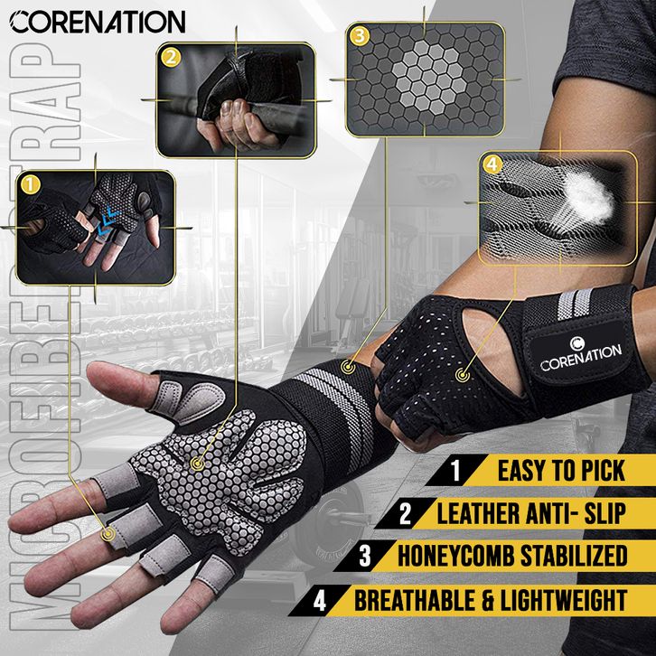 CoreNation Glove Fitness Gym Microfiber Long Strap Sarung Tangan Fitness Gym Olahraga
