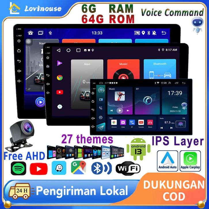 ✨with cooling system✨6G+64G IPS Layer Head Unit 7/9/10 Inch Mobil Android 13 Navigasi Untuk Semua Double Din Mobil Car