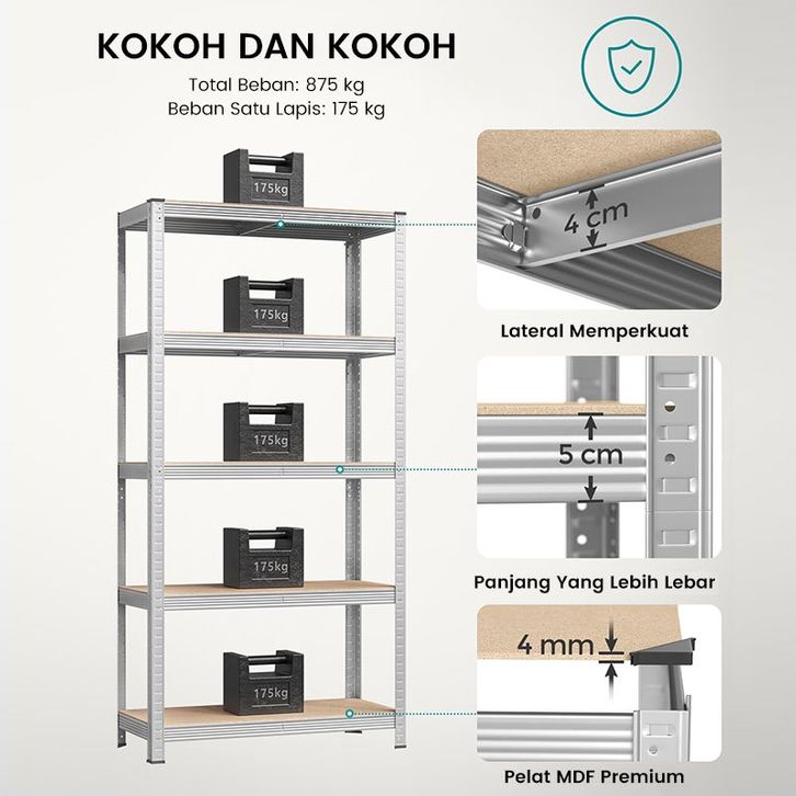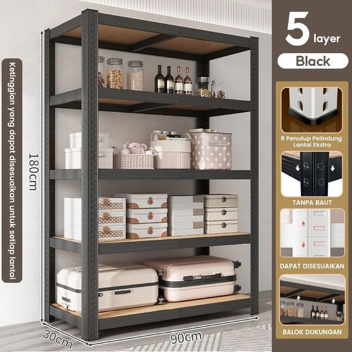 Rak Besi Siku iHOME 5 Susun Rak Barang 3/4/5 Tingkat Kuat Mudah Dipindahkan Dan Dibersihkan