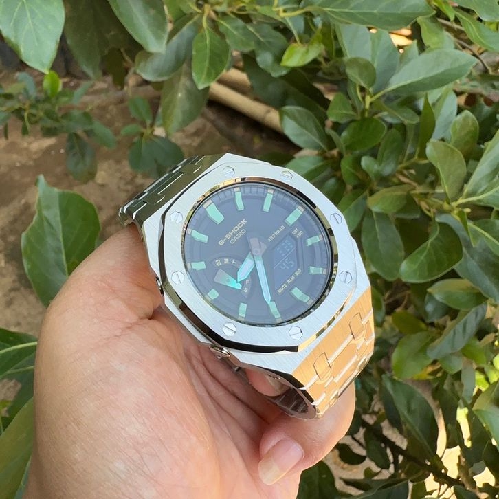 casio ap casio oak silver casio gshock ga2100 custom silver steel gen 3 casio g-shock ga-2100 original new