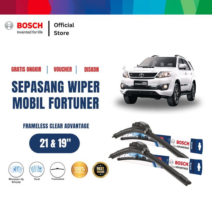 Bosch Sepasang Wiper Mobil Toyota Fortuner Frameless Clear Advantage 21 dan 19 Inci