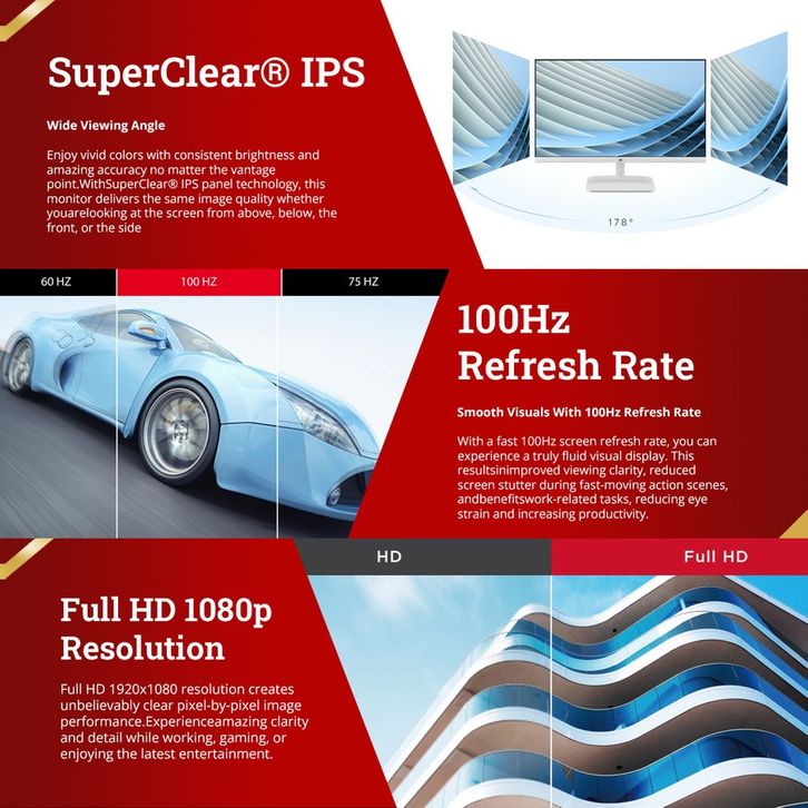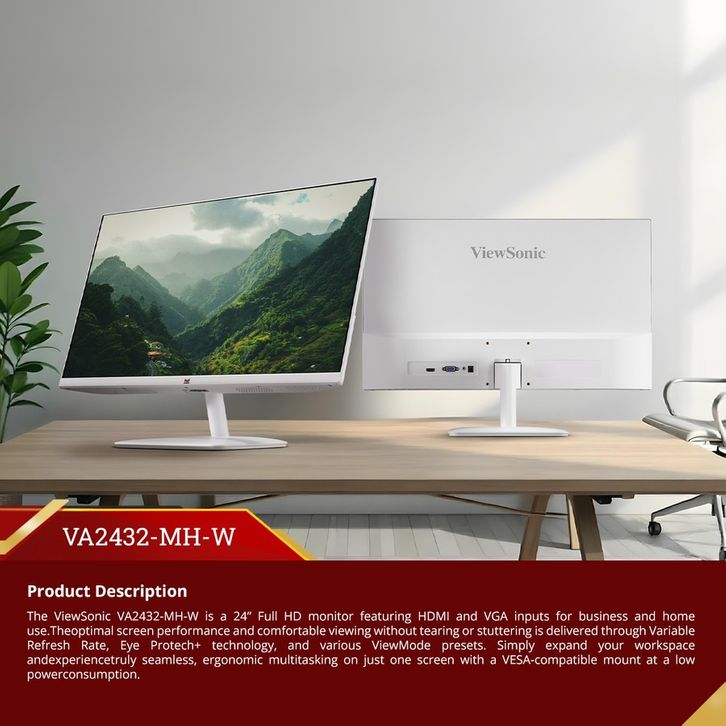 Monitor LED ViewSonic VA2432-MH-W 24" IPS 100hz FHD HDMI VGA WHITE