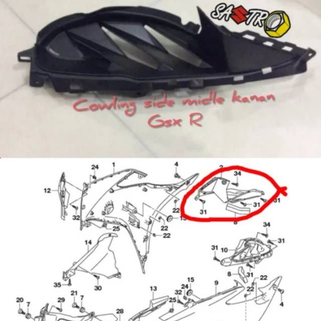 cowling side midle RH 94432-23K00 cover frame front iddle 47131-23KA0 jaring atas suzuki GSX R GSX S