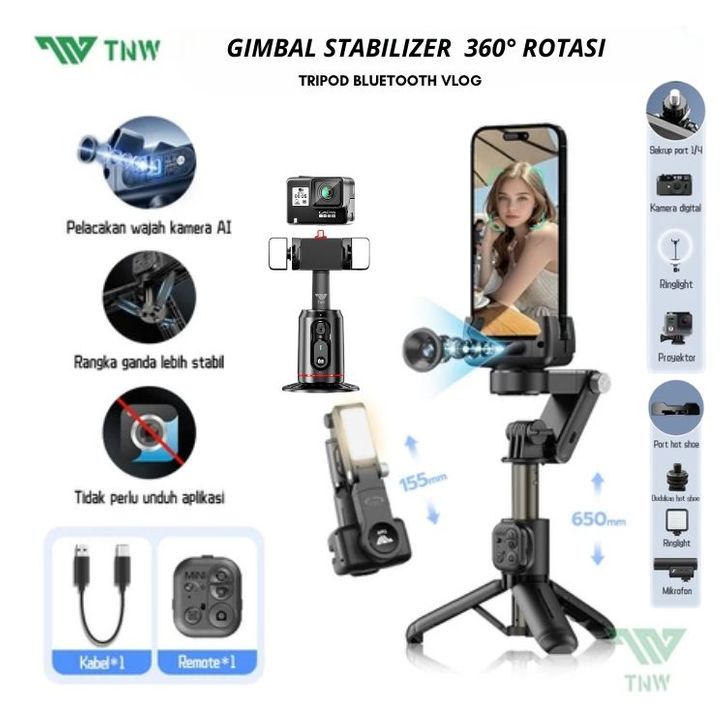 Gimbal Stabilizer hp kamera TNW-Q18 Tripod Bluetooth 360° Rotation 360° Rotation Tripod Handphone Vlog