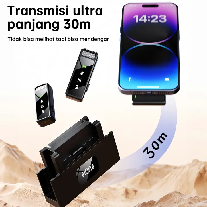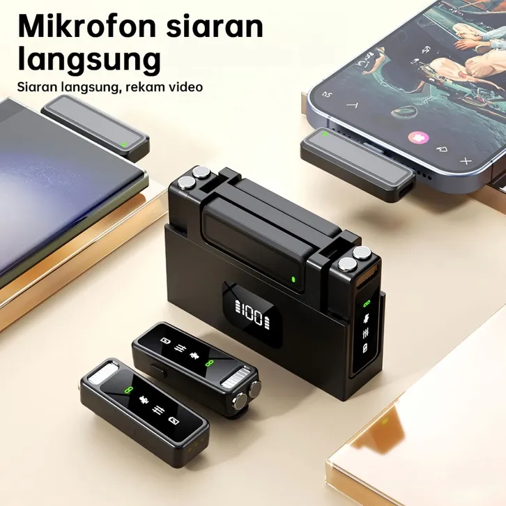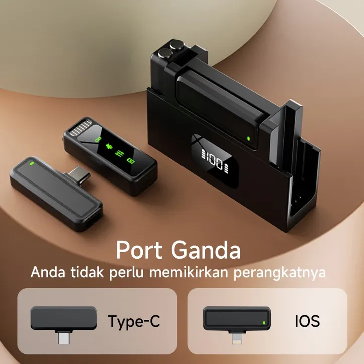 Microphone LM24 Lavalier Microphone Wireless Dual Koneksi Type C & iOS Mikrofon Clip On Mic HP Plug & Play Dual with