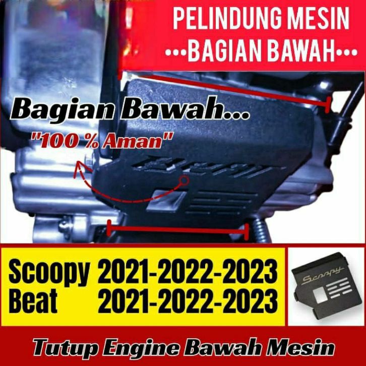 Cover Engine Pelindung Bawah Mesin Beat & Scoopy Tahun 2020 - 2023 Bahan Tebal