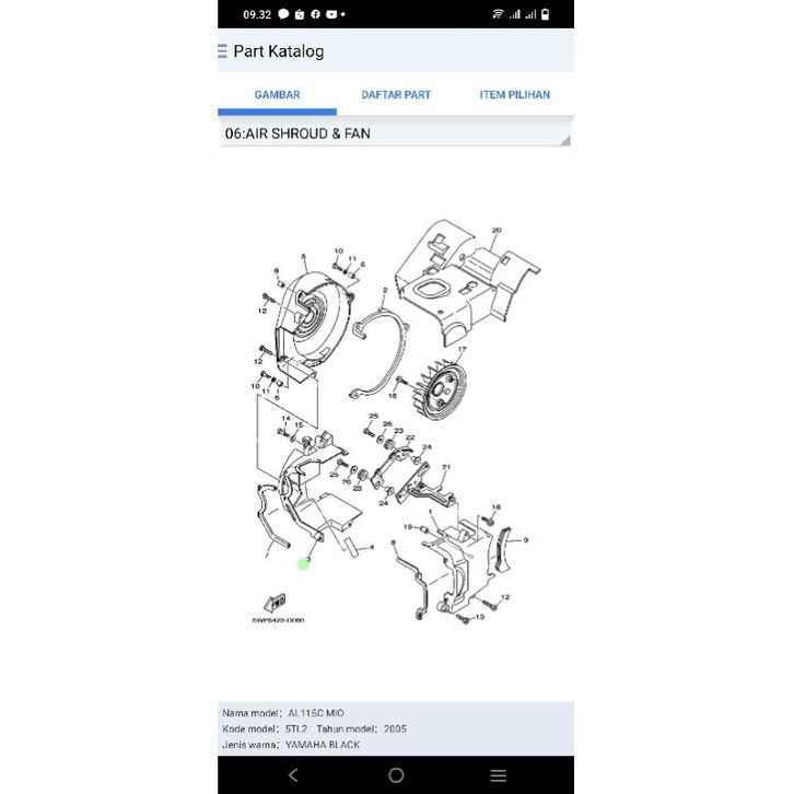 COVER TUTUP MESIN DALAM KANAN MIO SPORTY SMILE NOUVO ASLI ORIGINAL YAMAHA 5LW-E2652-00