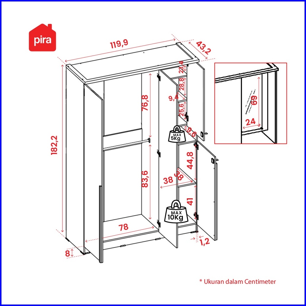 Pira Metropolis - Yona Wdd 3 Lemari Pakaian 3 Pintu Dengan Kaca Rias