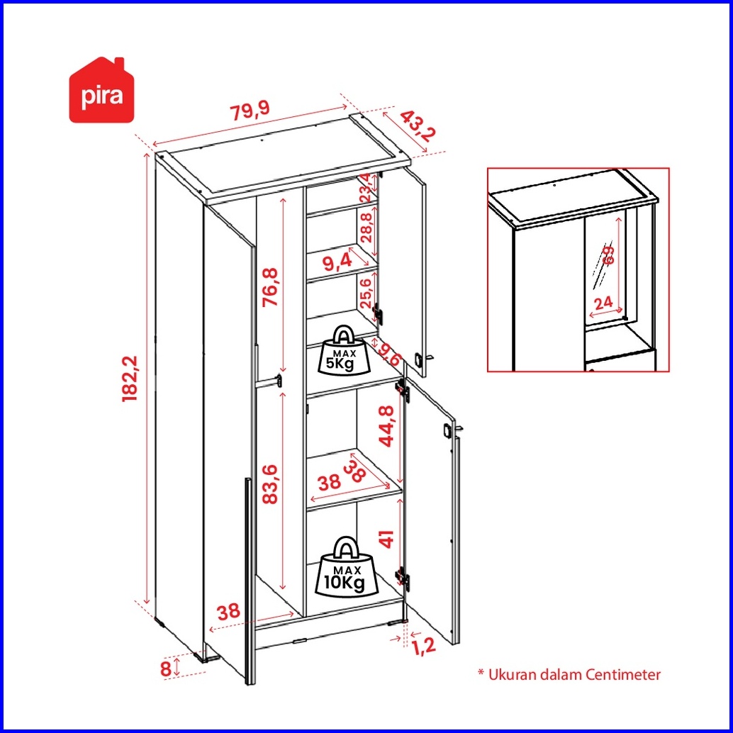 Pira Metropolis - Yona Wdd 2 Lemari Pakaian 2 Pintu Dengan Kaca Rias