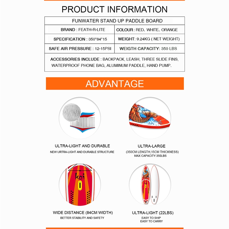 Inflatable SUP Paddle Board Surfboard Water Sport Surf Set with Tail Fin Foot Rope Inflator