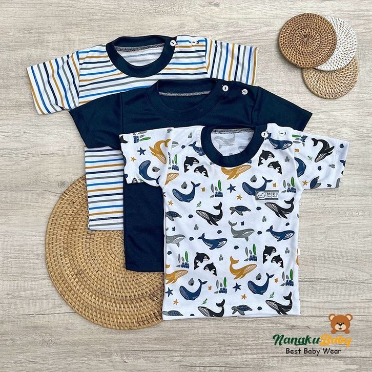 PROMO Nanaku Baby - Paket Baju Celana Bayi Isi 6 PCS Baby Newborn (3 Baju Lengan Pendek & 3 Celana Pendek Serian Paus Na