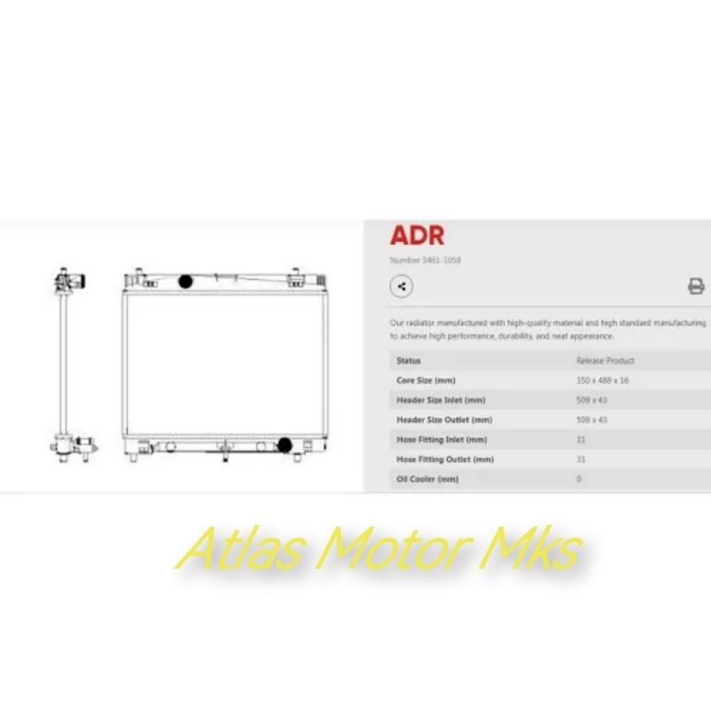 [1SET] RADIATOR ASSY MANUAL M/T TOYOTA YARIS BAKPAO GEN1 / VIOS NEW GEN2 "2006-2012" - ADR 3461-1058