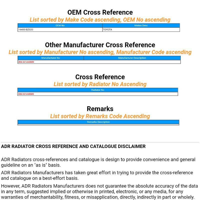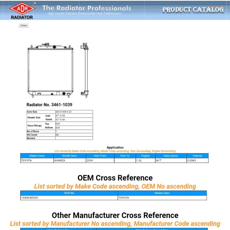 ADR Radiator Toyota Avanza Non VVT-i 1.3cc Tahun 2004-2006 M/T 3461-1039C