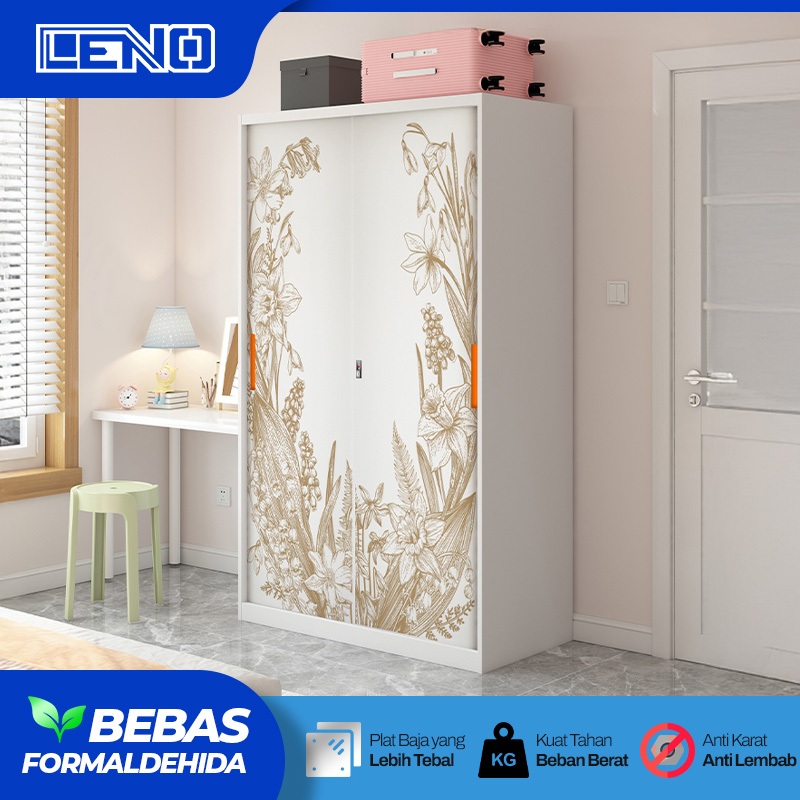 [Mall] LEMARI BESI SLIDING 2 PINTU LEMARI BESI PAKAIAN LEMARI BAJU MINIMALIS FULL MOTIF & FULL PLAT BESI