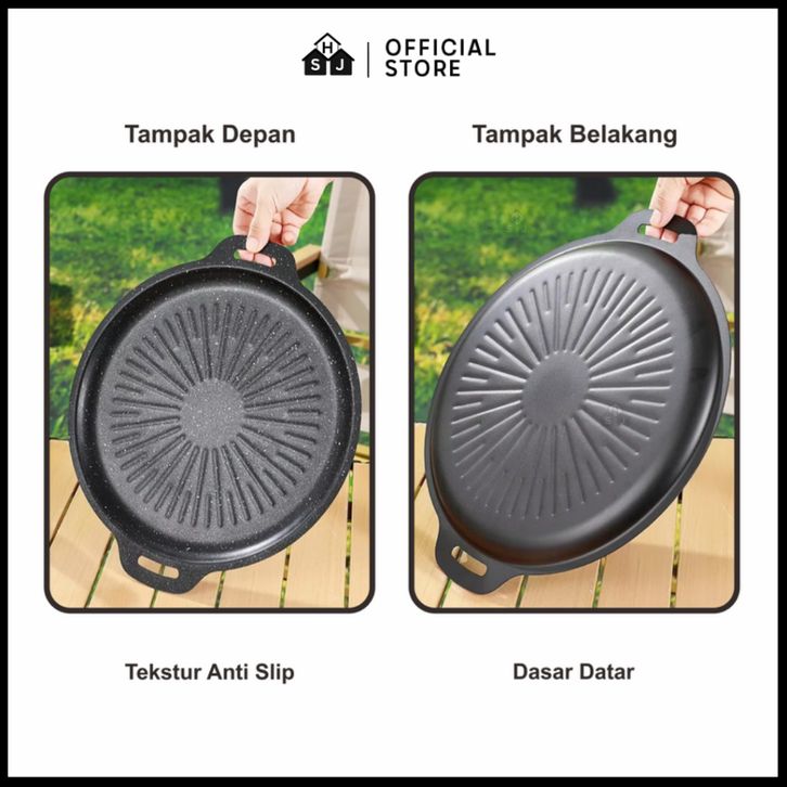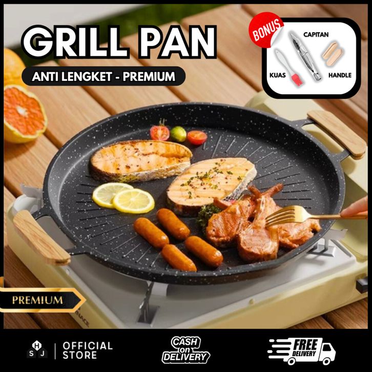 Grill Pan Premium BBQ Korean Wajan Panggangan Anti Lengket Serbaguna Alat Baja Teflon Kitchenware Bonus Set Capitan