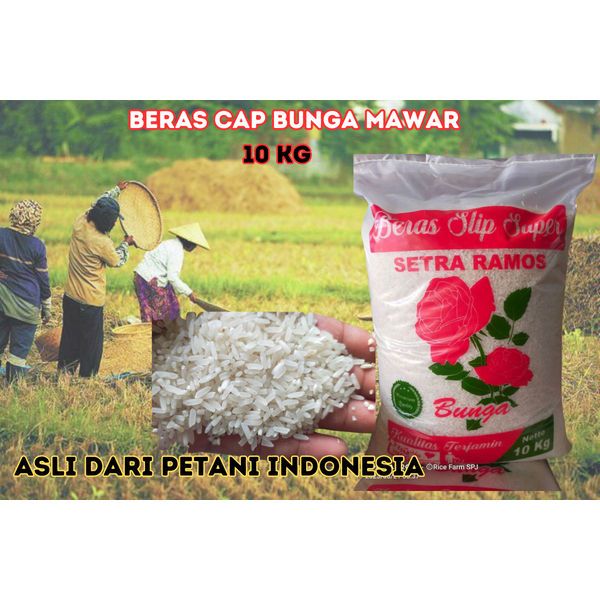 Beras Gratis Ongkir / Beras Cap Mawar 10Kg | Beras Asli Langsung Dari Petani Padi