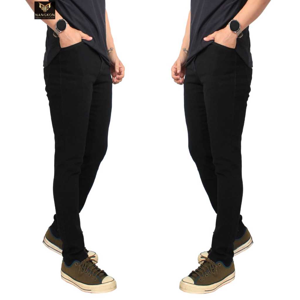 (Gratis Ongkir) Celana Jeans Pria Bahan Melar Pensil Cowok Hitam Panjang Pria Slim Fit NANGKON Premium