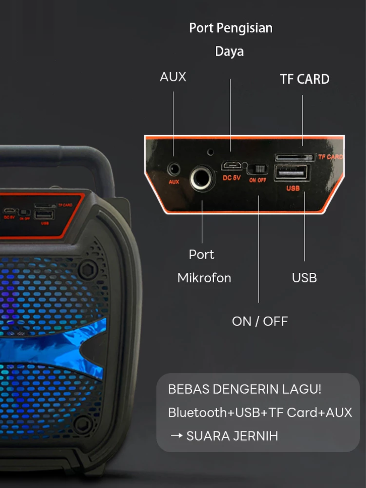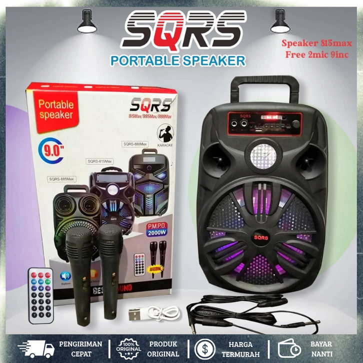 Speaker Bluetooth Portable SQRS-815 Bass Sound + Mic Karaoke LED Mini Speaker Aktif Wireless Murah Polytron/Advance/GMC