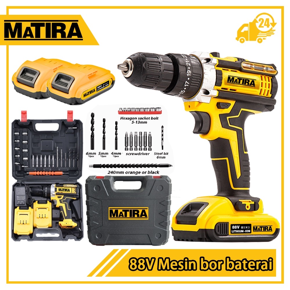 MATIRA 88V Mesin Bor Listrik 1 Set Lengkap Impact Ori Cordless Multifungsi 13mm Makita Apr Bosch Jumbo Baterai