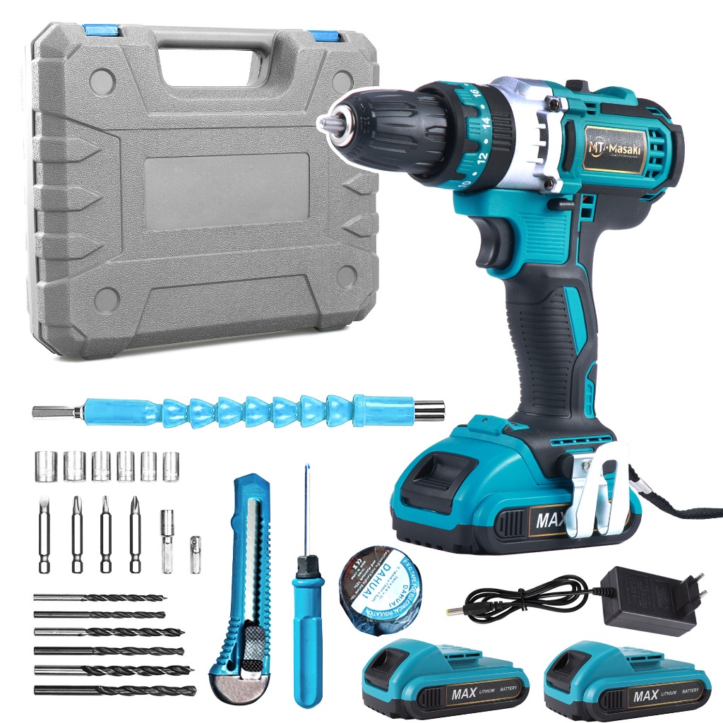 MTMASAKI Mesin Bor Listrik 1 Set Lengkap Impact Ori Cordless Multifungsi 13mm Apr Bosch Jumbo Baterai