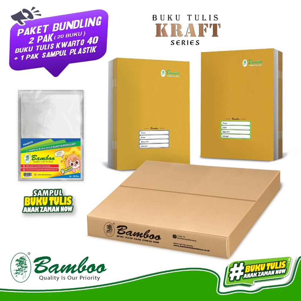 Bamboo Buku Tulis Kwarto 40 Kraft (Bundling 2 Pak Buku+Sampul Plastik)