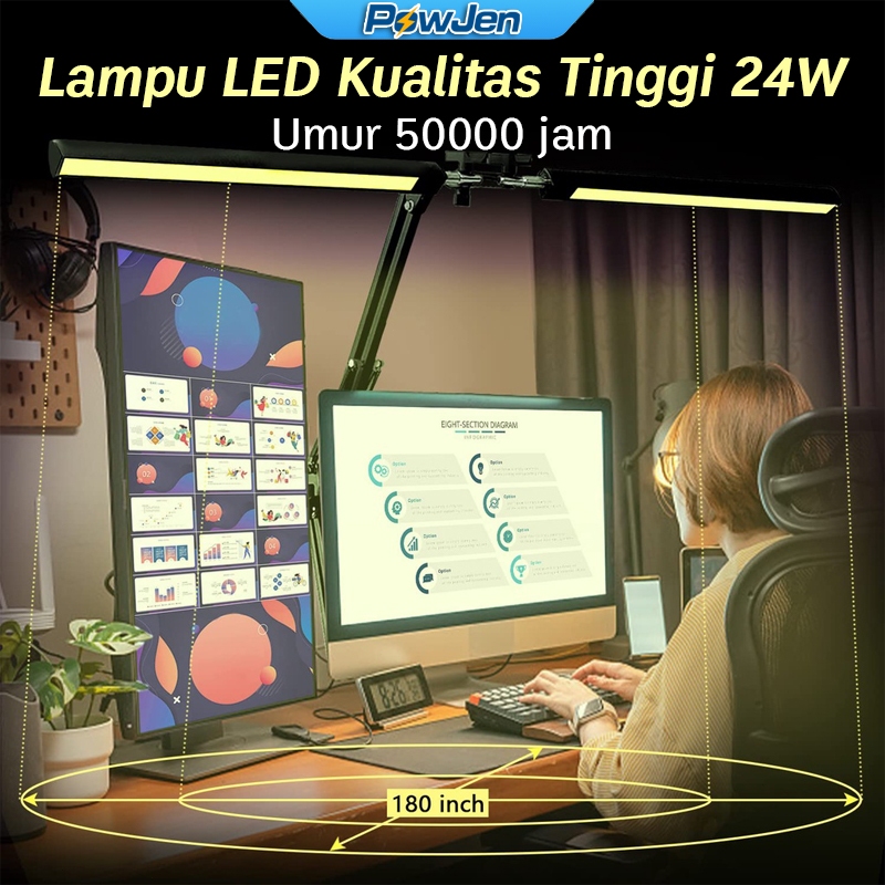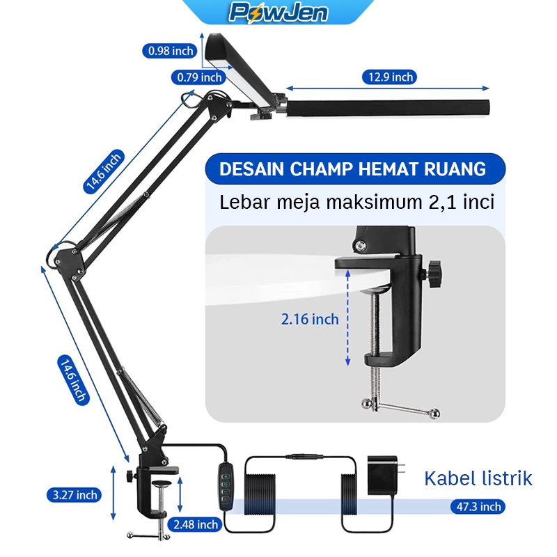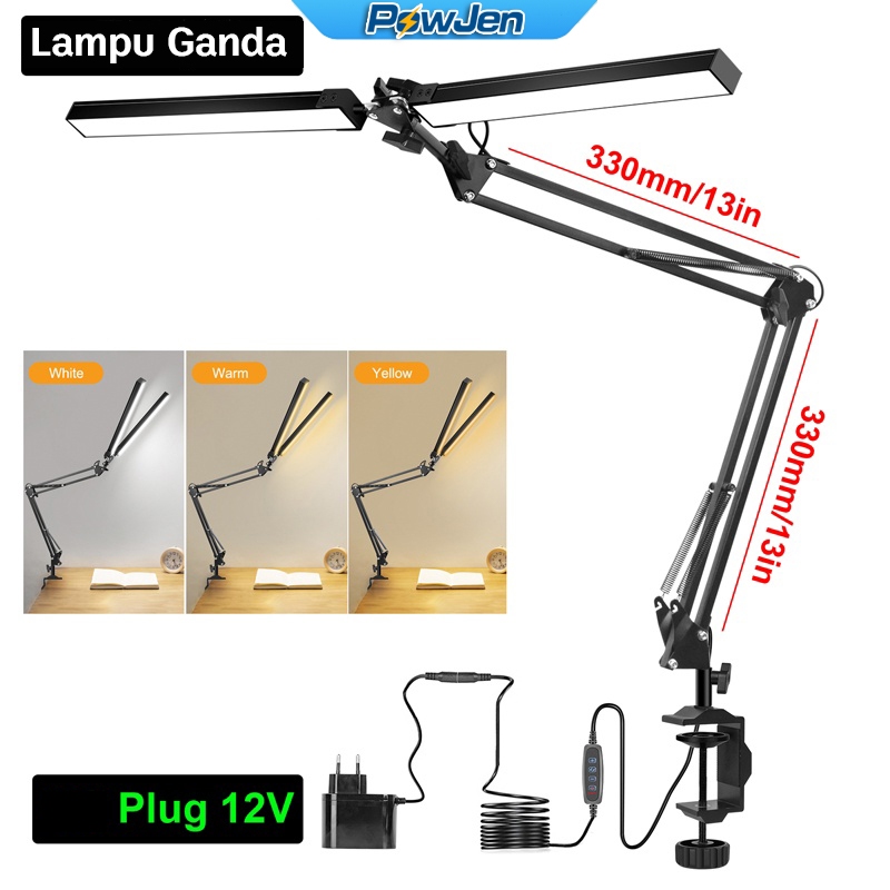 PowJen 24W Lampu Meja Belajar Arsitek 3 Warna Duduk Njepit Lampu Baca Belajar Kerja