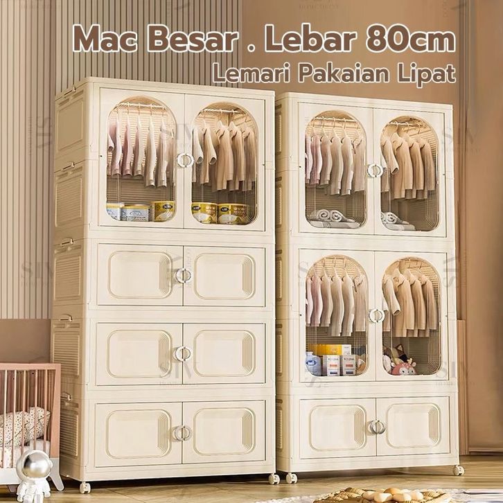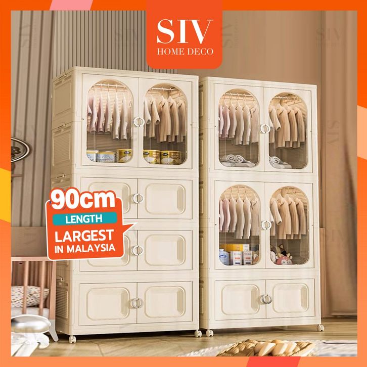 【Ekstra Tebal 90cm】SIV Lemari Baju Bayi Anak Plastik Lemari Pakaian Estetik Minimalis Dengan Roda