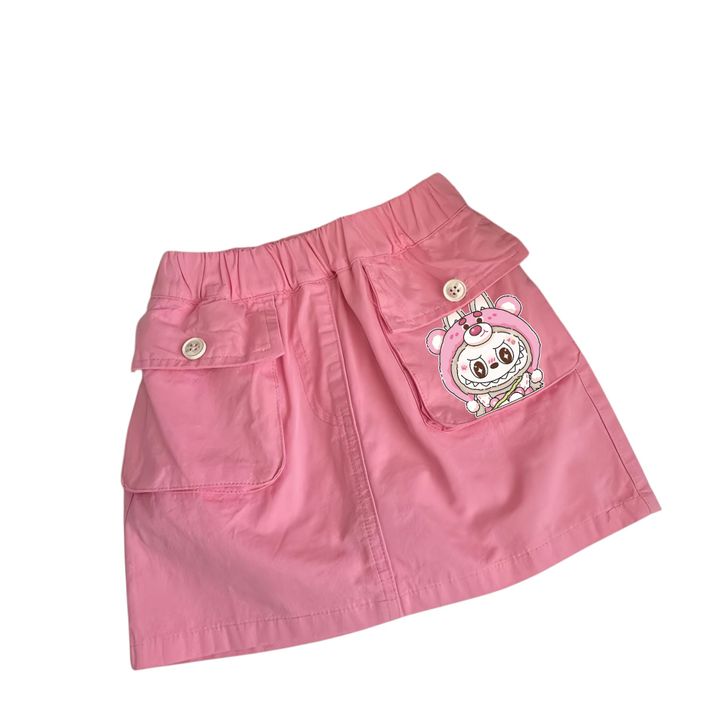 Setelan Anak Perempuan 2in1 – Kaos Karakter Katun Combat & Rok Stylish