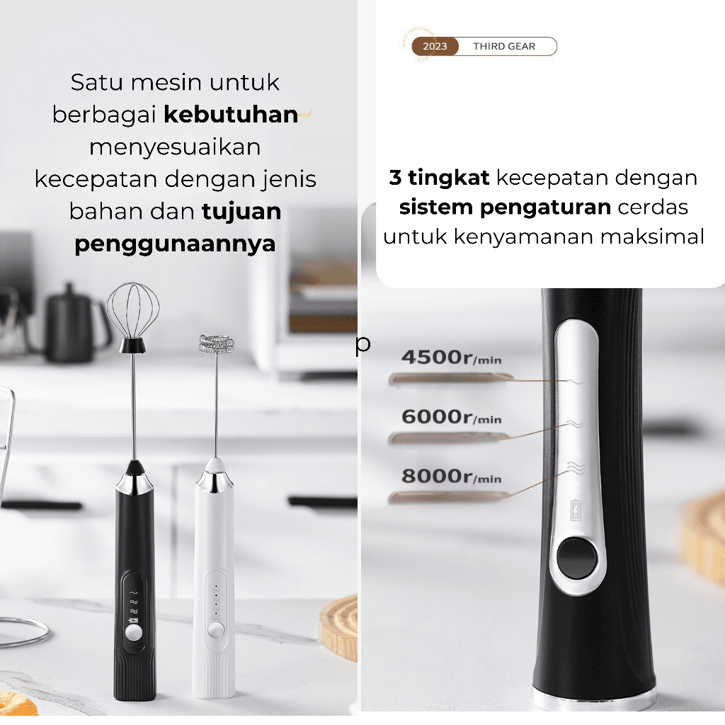 HOMETECH Hand Mixer Listrik Pengaduk Minuman Kopi/Telur Milk Frother Electric Portable
