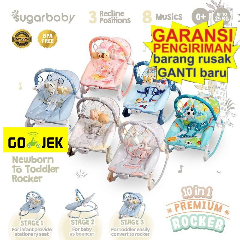 Ayunan Elektrik Sugar Baby 10 in 1 Rocking Bouncer Premium, Ideal untuk Tidur & Aktivitas Bayi